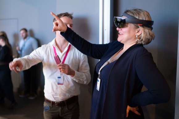 Jurymitglied Prof. Dr. Jana Wolf probiert auf der Preisverleihung 2019 den VSI von apoQlar aus. © Novartis